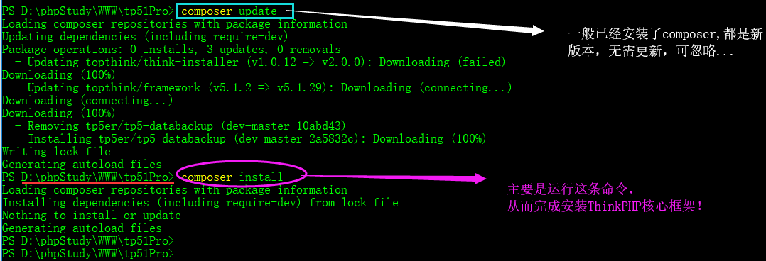 > 注意前面的 运行 composer 命令;强烈建议学习新版本的框架,要学会使用composer哦