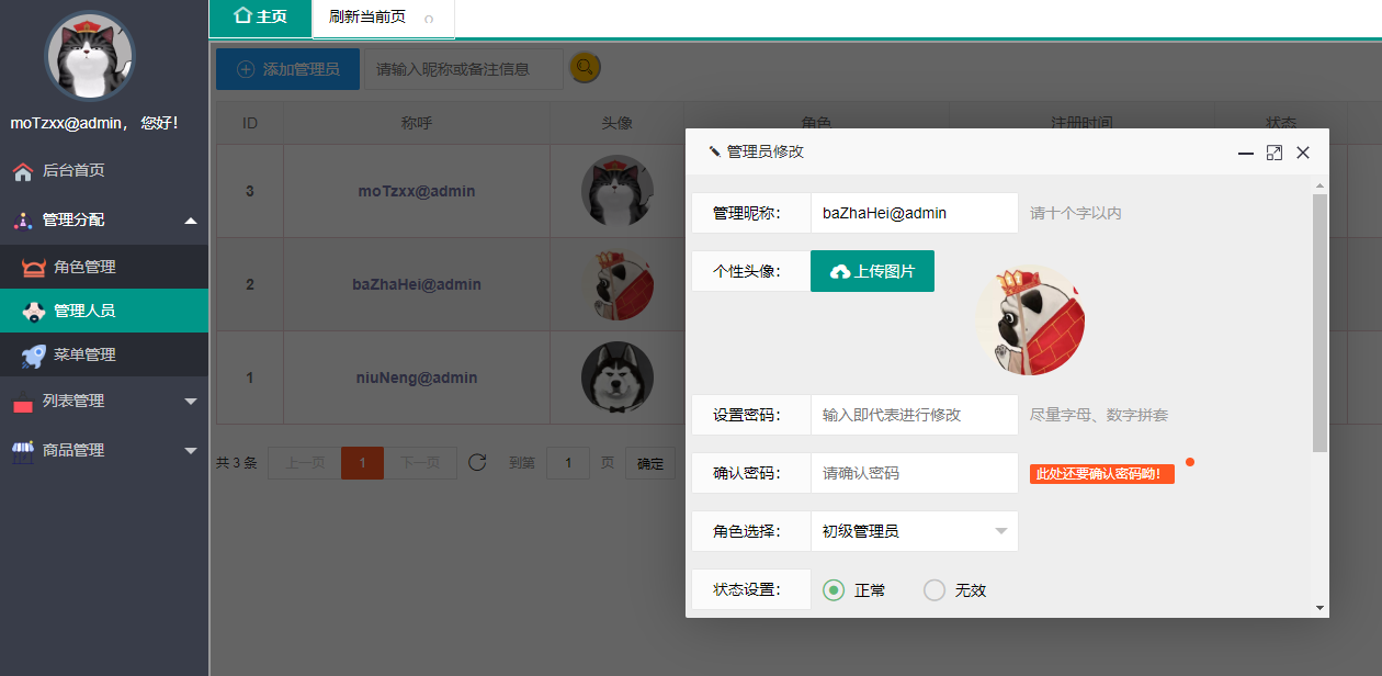 > 修改数据的时候,注意,如果不想改动密码,是无需进行填写的!