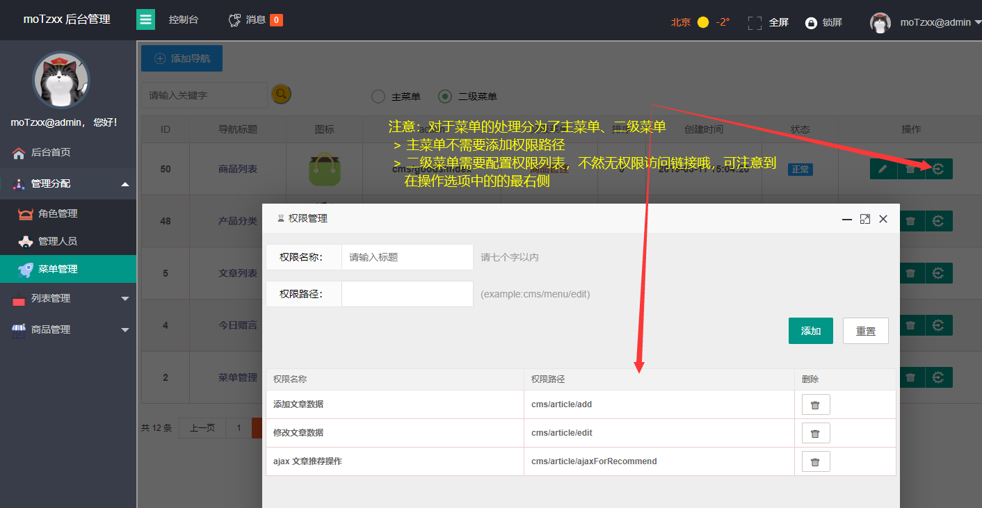 > 1.对于权限控制功能,隐藏的比较深; 要求只对二级菜单后 做权限控制,以区分不同角色的分级管理