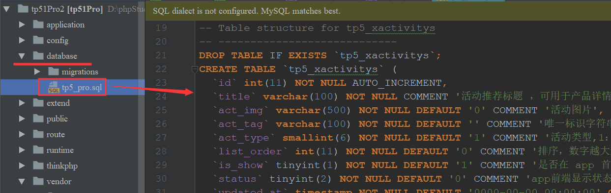 管理工具,直接运行所提供的"database/tp5_pro.sql"