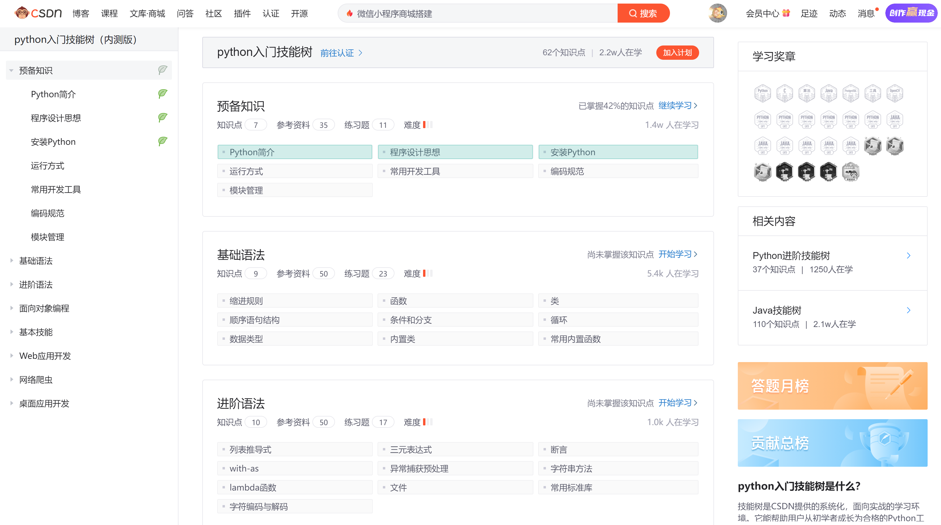 而Python技能树是CSDN平台提供的系统化,面向实战的学习环境。它能帮助用户从初学者成长为合格的Python工程师。