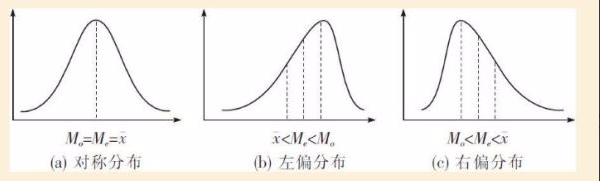 偏度:反映频数分布偏态方向和程度的测度,正态分布偏度=0,均值大于中位数的称为右偏,也可以理解伪长尾在右侧。同理可知,负偏也叫左偏。如果数据是右偏分布,说明数据存在极大值,必然拉动平均数向极大值一方靠。 如果数据是左偏分布,说明数据存在极小值,必然拉动平均数向极小值一方靠。