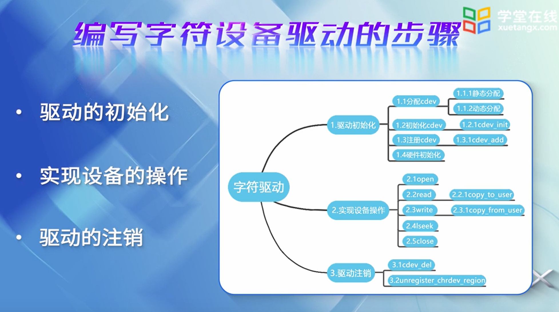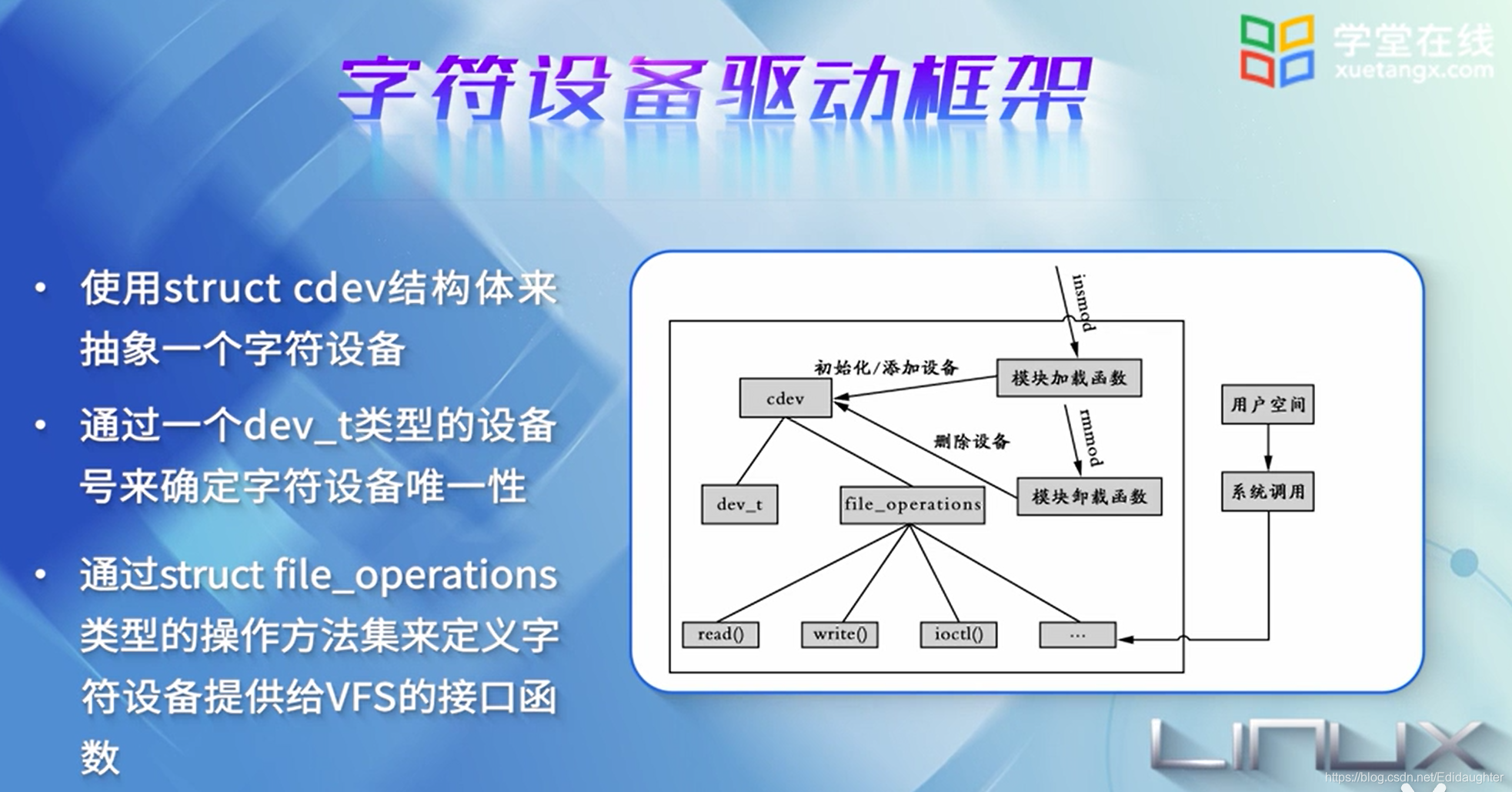 cdev_init() --初始化函数,初始化cdev的成员并且建立起cdev与file_operations之间的关联关系