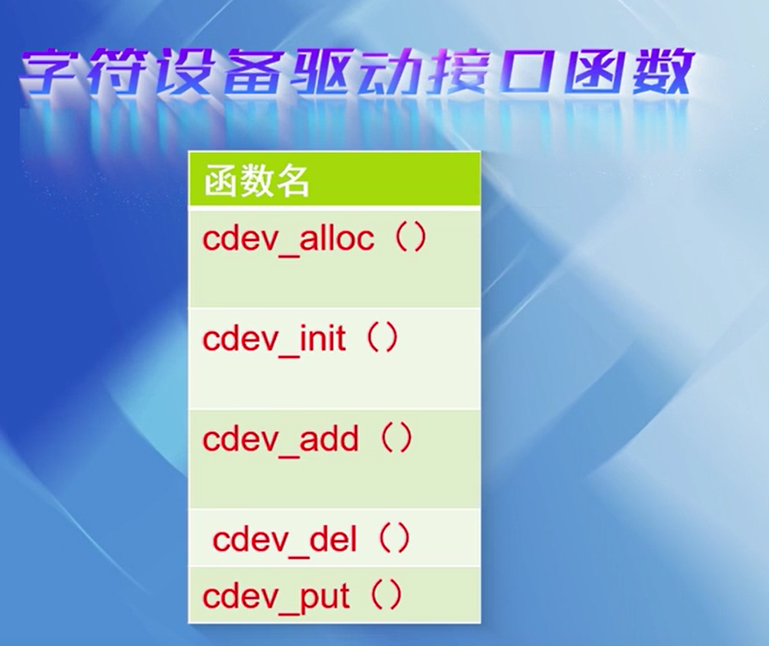 cdev_add() --注册cdev设备对象,也就是添加cdev对象到字符设备列表中