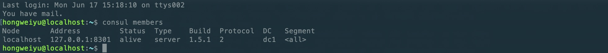 localhost 127.0.0.1:8301 alive server 1.5.1 2 dc1 <all>