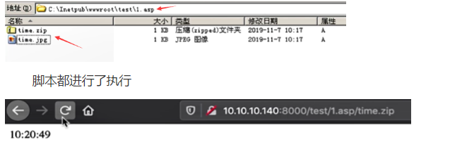 我们在网站wwwroot下建立文件夹 upload,在文件夹中建立文件 time.asp内容为 <%=time()%> 脚本执行时会显示时间,我们再建立一个内容相同的文件,time.asp;1.jpg。访问time.asp;1.jpg时发现它被执行了