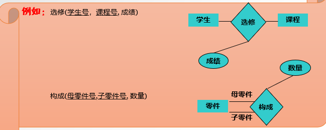 转换为一个独立的关系模式,原则:关系模式的属性 = 与该联系相连的各实体型的码 + 该联系自身的属性;关系模式的码(用下划线标出) = 各实体型的码;