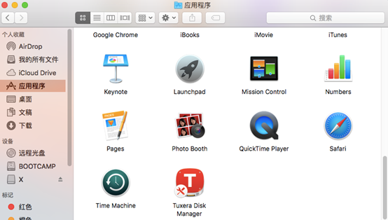 打开Finder窗口后,如图2所示,打开应用程序选项,即可找到Tuxera Disk Manager程序。
