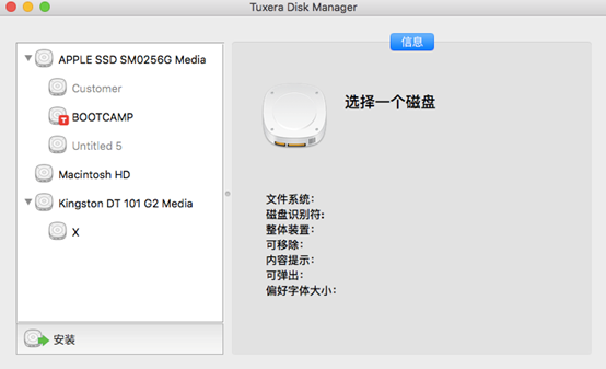 即可开启Tuxera ntfs for mac的磁盘管理功能。
