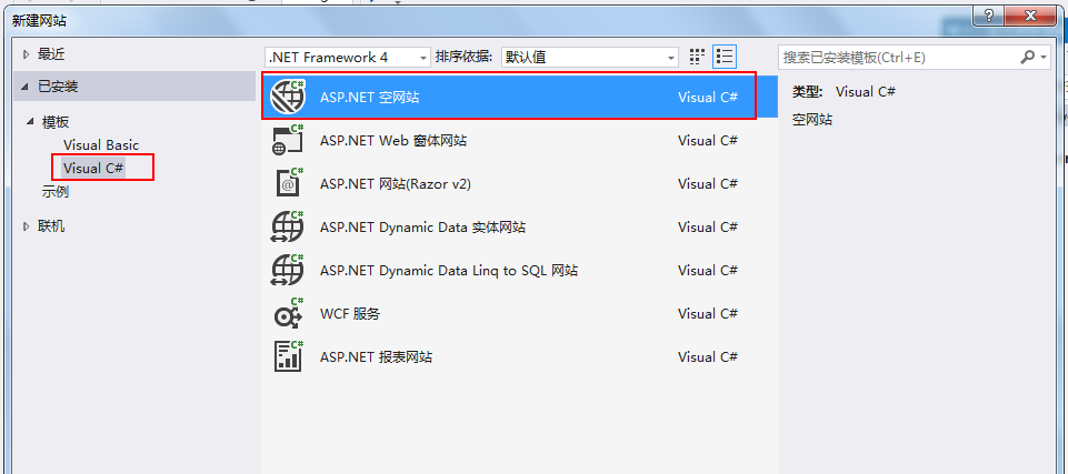 选择 asp.net空网站