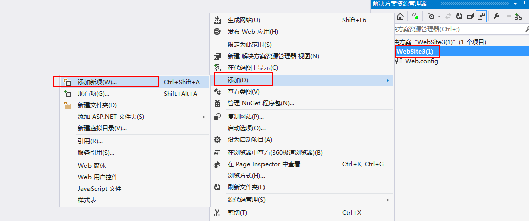 选中网站 右键 -添加-添加新项