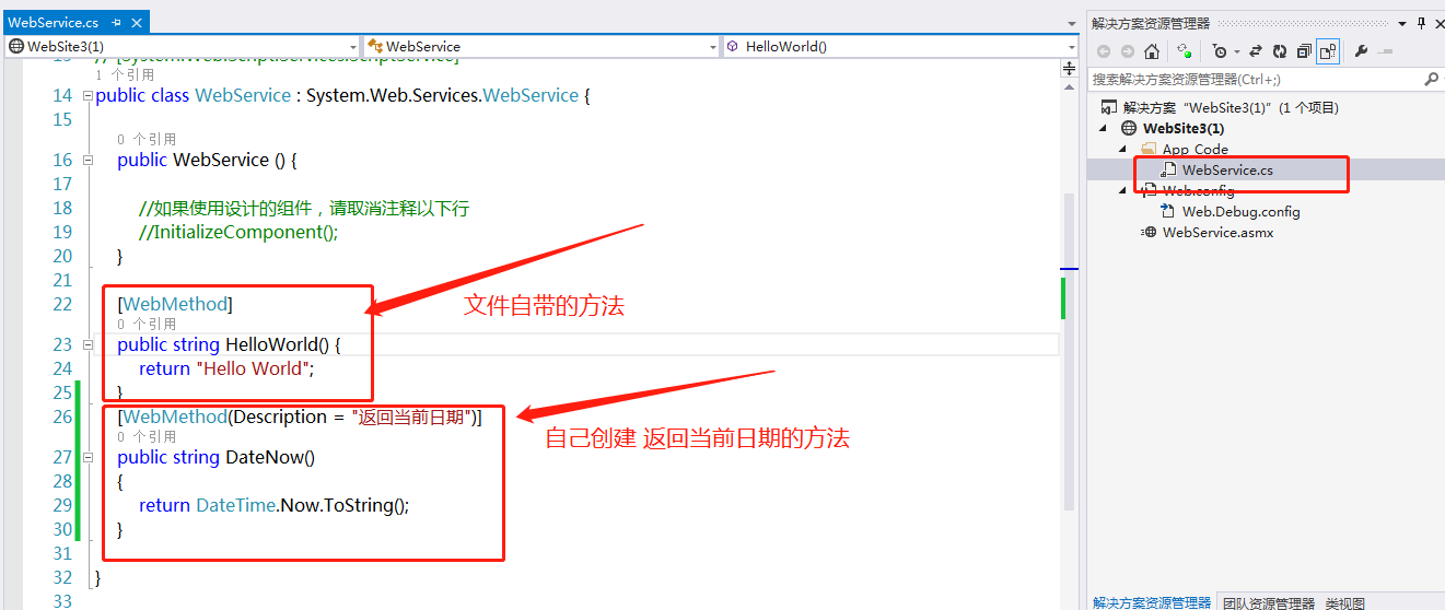 创建完成之后看到的 .cs 文件,在这里可以编写自己的方法