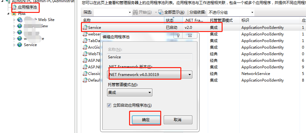 修改 应用程序池