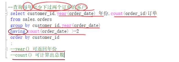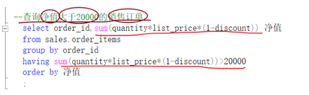 ④因为SQL Server在 group by子句之后处理having 子句,所以不能通过使用列别名来引用选择列表中指 定的聚合函数。