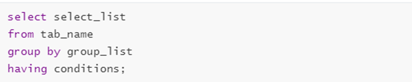 having子句通常与group by子句一起,以根据指定的条件列表过滤分组