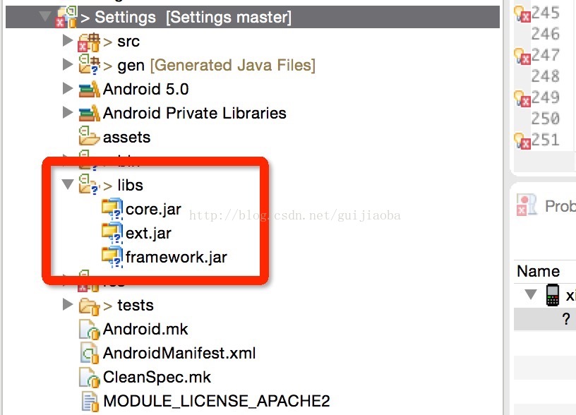 导入到elcipse中,关联此jar就可以。关联的jar时放在libs中,但是有个必须注意的地方,点击项目的属性,在Java BuildPath类别,Order and Export标签,Android Dependenceis必须要比Android 5.0的在上面,这样在引用的时候,就会优先引用Android Dependceis中的jar。