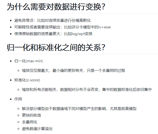 例如“为什么需要对数据进行变换?”,“归一化和标准化之间的关系?”
