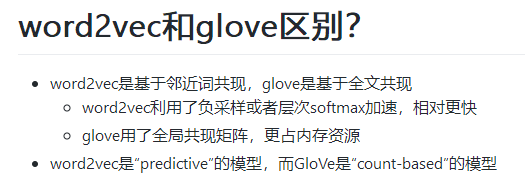 例如“word2vec和glove区别?”