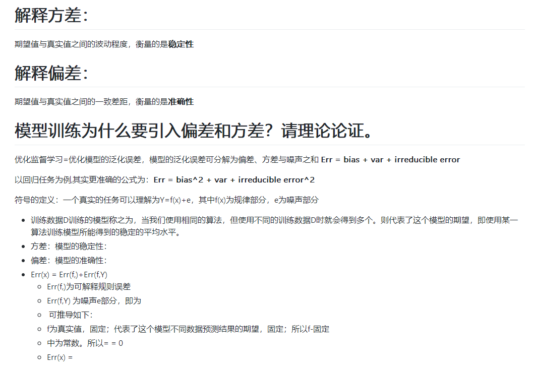 例如“如何解释偏差、方差,模型训练为什么要引入偏差和方差?”