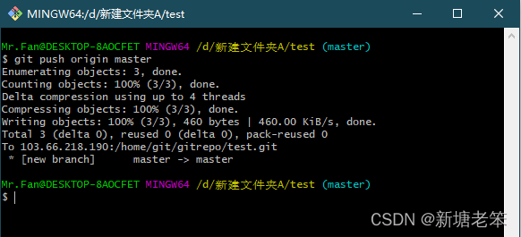 在本地电脑上新建一个文件夹A,右键打开Git bash here,试试克隆,会得到一个空的test文件夹。