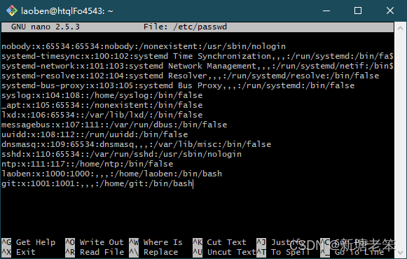 找到git用户,一般都在最后,按键盘方向键移动光标到最后,将