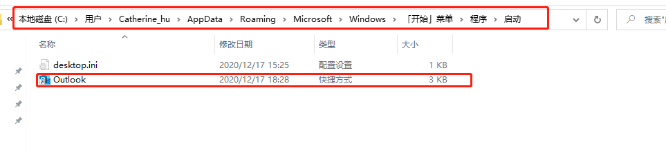 2.找到这个路径,也就是启动项对应的文件夹,把上一步找到的快捷方式复制到这个路径下