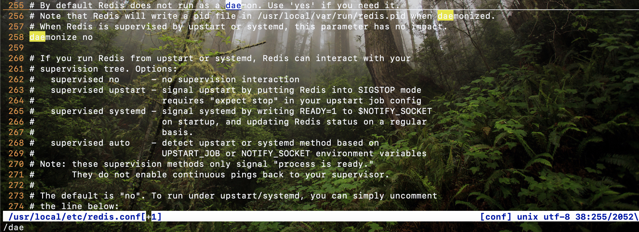 redis默认是前台启动,如果关闭当前终端后,redis将自动关闭,如果我们想以守护进程的方式运行(后台运行),可以进入/usr/local/etc路径,在redis.conf中将daemonize no,修改成yes即可。