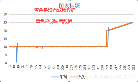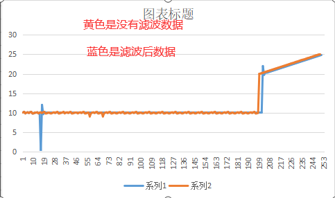 /* xn--------输入的信号序列(列向量)* itr-------迭代次数,标量,默认为xn的长度,M<itr<sizeof(xn)* en--------误差序列(itr*1)列向量* dn--------所期望的响应序列(列向量)* M---------滤波器的阶数(标量)* mu--------收敛因子(步长)标量* W---------滤波器权值矩阵,大小为M*itr* yn--------实际输出序列(列向量)*/float xn[250] = { 10,10.2,9.8,10,10.1,9.9,10.1,10.2,9.78,9.9,10, 10,10.1,9.8,10,10.1,9.9,10.1,10.2,9.78,9.9,10, 10,9.8,9.8,10,10.1,9.9,10.1,10.2,9.78,9.9,10, 10,10.2,9.8,10,10.1,9.9,10.1,10.2,9.78,9.9,10, 10,10,9.8,10,10.1,9.9,10.10,10.2,9.78,9.9,10, 10,9,9.8,10,10.1,9.9,10.1,10.2,9.78,9.9,10, 10,9,9.8,10,10.1,9.9,10.1,10.2,9.78,9.9,10, 10,9.8,9.8,10,10.1,9.9,10.1,10.2,9.78,9.9,10, 10,9.8,9.8,10,10.1,9.9,10.1,10.2,9.78,9.9,10,10,9.8,9.8,10,10.1,9.9,10.1,10.2,9.78,9.9,10, 10,9.8,9.8,10,10.1,9.9,10.1,10.2,9.78,9.9,10, 10,9.8,9.8,10,10.1,9.9,10.1,10.2,9.78,9.9,10, 10,9.8,9.8,10,10.1,9.9,10.1,10.2,9.78,9.9,10, 10,9.8,9.8,10,10.1,9.9,10.1,10.2,9.78,9.9,10, 10,9.8,9.8,10,10.1,9.9,10.1,10.2,9.78,9.9,10, 10,9.8,9.8,10,10.1,9.9,10.1,10.2,9.78,9.9,10, 10,9.8,9.8,10,10.1,9.9,10.1,10.2,9.78,9.9,10, 10,9.8,9.8,10,10.1,9.9,10.1,10.2,9.78,9.9,10,20.0,20.1,20.2,20.3,20.4,20.5,20.6,20.7,20.8,20.9,21,21.1,21.2,21.3,21.4,21.5,21.6,21.7,21.8,21.9,22,22.1,22.2,22.3,22.4,22.51,22.62,22.72,22.78,22.89,23.02,23.12,23.18,23.31,23.42,23.53,23.62,23.67,23.78,23.89,24.02,24.08,24.18,24.32,24.38,24.52,24.61,24.74,24.81,24.92,25,25.1 };