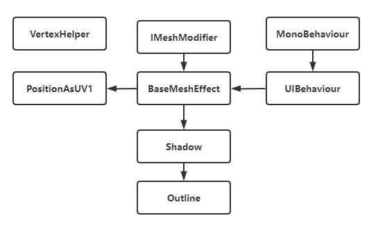 ——BaseMeshEffect:用于实现网格效果的抽象基类,可以在子类中重写ModifyMesh方法去修改顶点数据,我们实现网格效果尽量继承此类(例如描边、阴影、镜像)