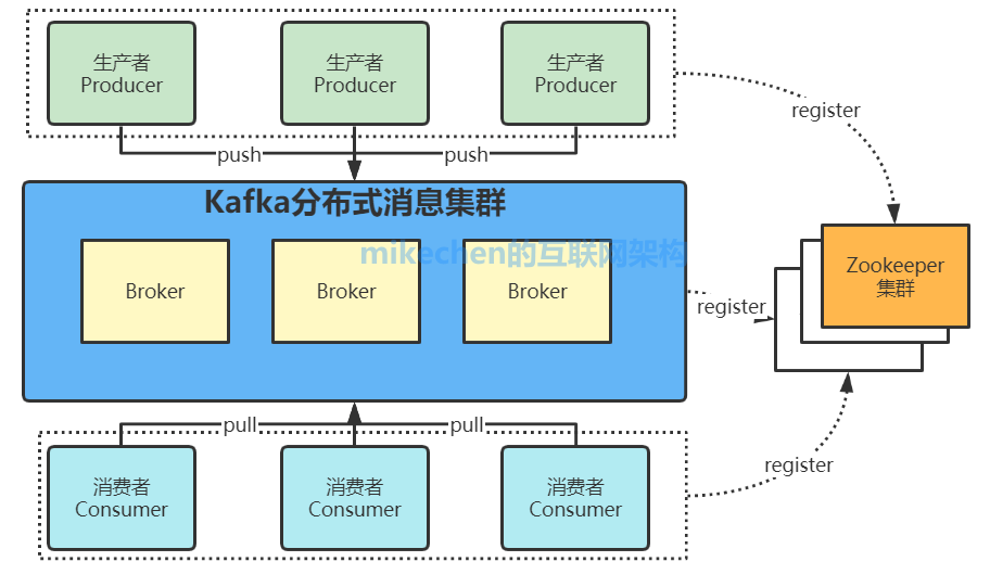 (2)Kafka使用zookeeper作为其分布式协调框架,很好的将消息生产、消息存储、消息消费的过程结合在一起。