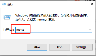 Ctrl+R打开一下窗口,并输入命令 mstsc,点击确定