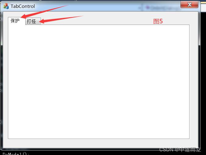 现在再编译运行,这时选项卡控件界面里已经有了选项("打怪"和"保护"),效果如下图(图5):