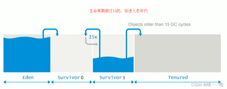 4、新生代的对象默认生命周期超过 15 ,就会去养老区养老