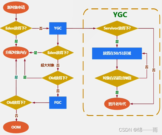 1、我们创建的对象,一般都是存放在Eden区的,当我们Eden区满了后,就会触发GC操作,一般被称为 YGC / Minor GC操作。