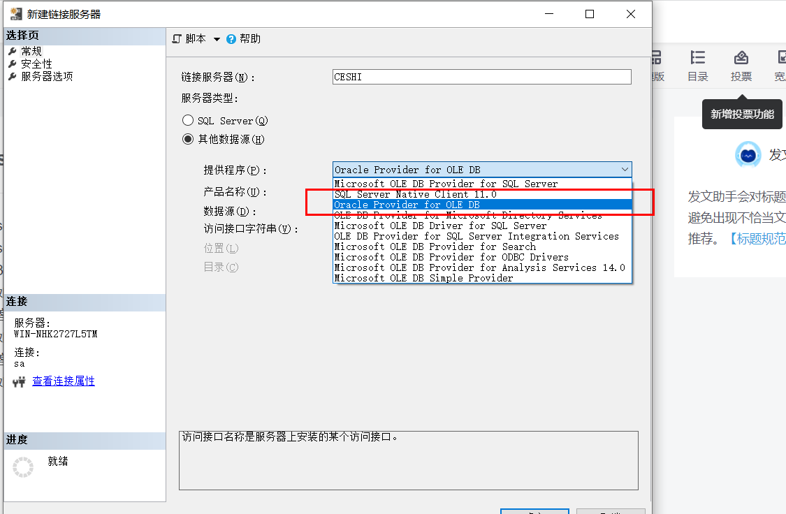 1.sqlserver链接orcacle数据库前提条件: