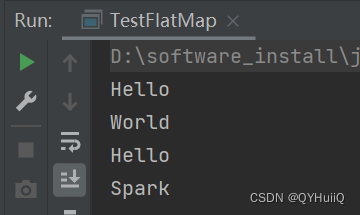 import org.apache.spark.{SparkConf, SparkContext}object TestFlatMap {def main(args: Array[String]): Unit = {//建立Spark连接val sparkConf = new SparkConf().setMaster("local").setAppName("TestWordCountApp")val sc = new SparkContext(sparkConf)//以字符串作为元素,组成的Listval rdd: RDD[String] = sc.makeRDD(List("Hello World", "Hello Spark"))//将字符串分割后的元素作为迭代器元素val flatRDD: RDD[String] = rdd.flatMap(element => {element.split(" ")})flatRDD.collect().foreach(println)//关闭连接sc.stop()}}