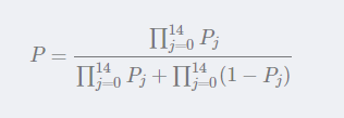 因为 normal 和 junk 的邮件数量相同,所以其先验概率 P(S) 和 P(H) 是相同的,均为 50%, 所以公式简化为 :