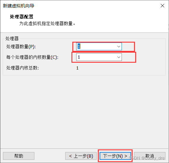 7.根据自己电脑配置来配置处理器数量和内核数,然后“下一步”