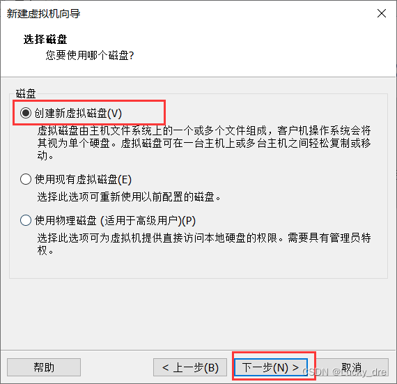12. 选择创建新虚拟磁盘,然后“下一步”