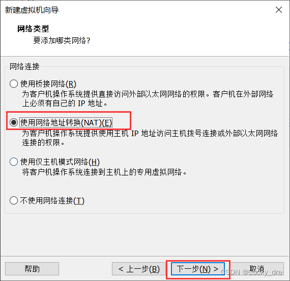 9. 网络连接最好选择NAT,然后“下一步”(VMware网卡配置模式)
