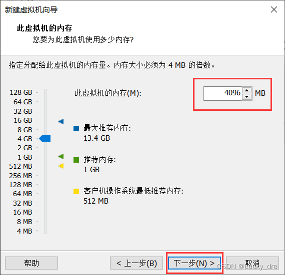 8.配置虚拟机内存(最好不超过本机内存的1/5),然后“下一步”