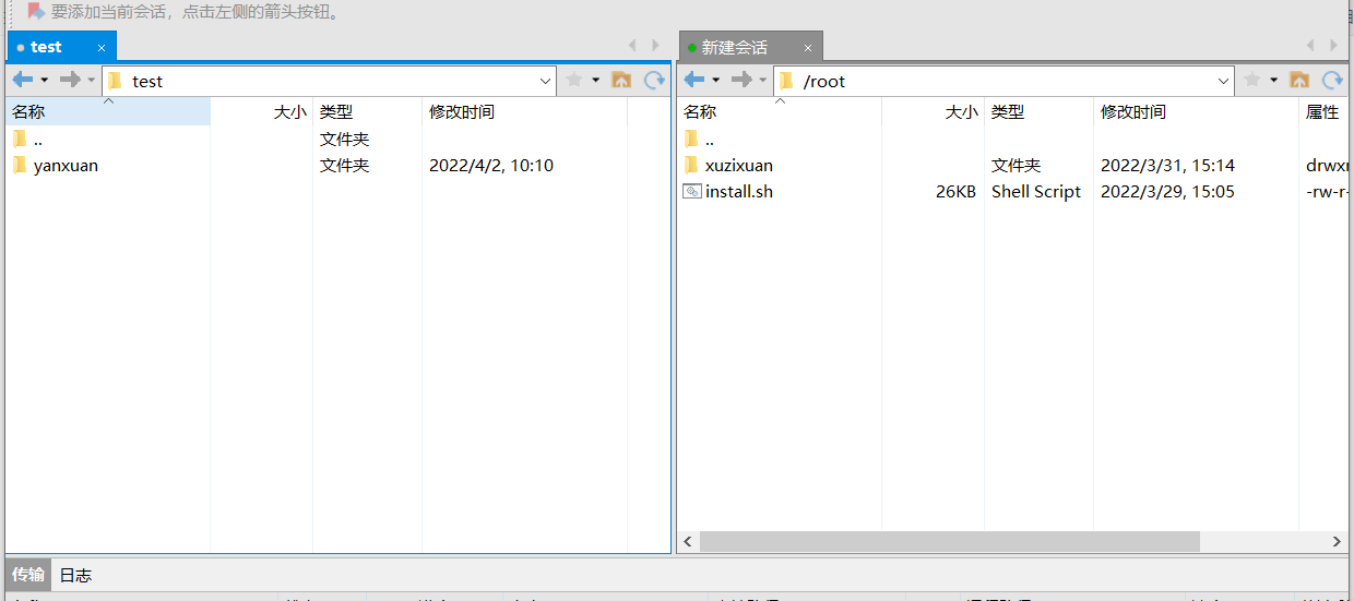 进入下面的画面,左侧是本地的,右侧就是服务器的空间,可以在服务器的root文件夹下新建文件,将dist文件拷贝过去。拷贝完成之后就可以退出xftp了