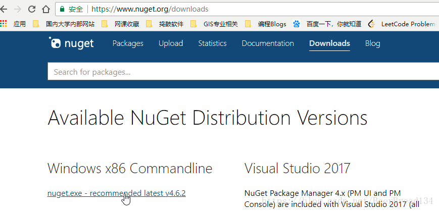 先去https://www.nuget.org/downloads官网下载页面下载最新的nuget,双击运行。
