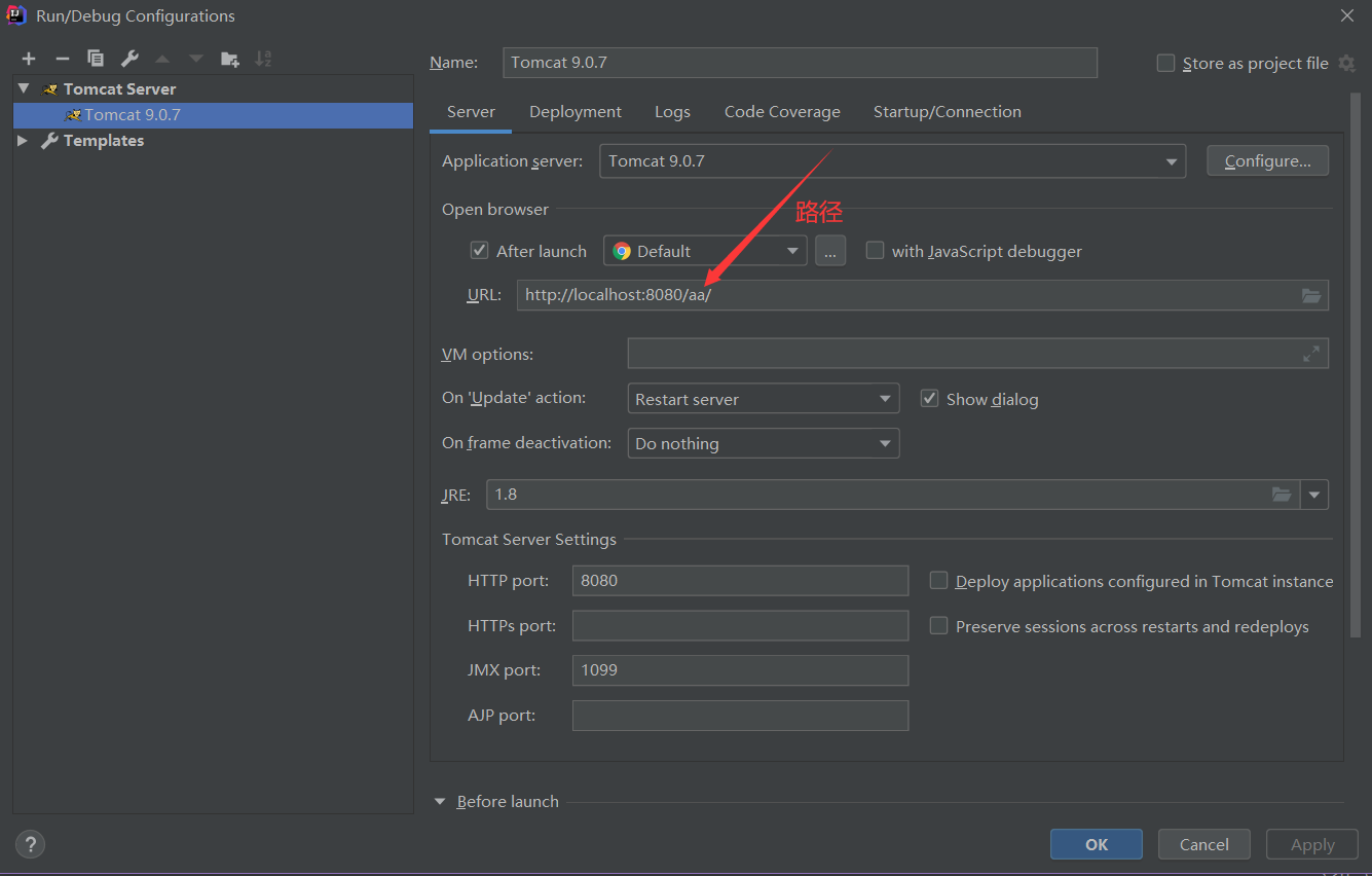 被蓝色覆盖的那行,是加上去了,这个是要配置的!这个配置的是服务器的启动路径。