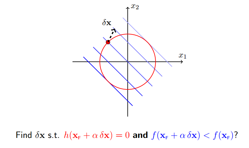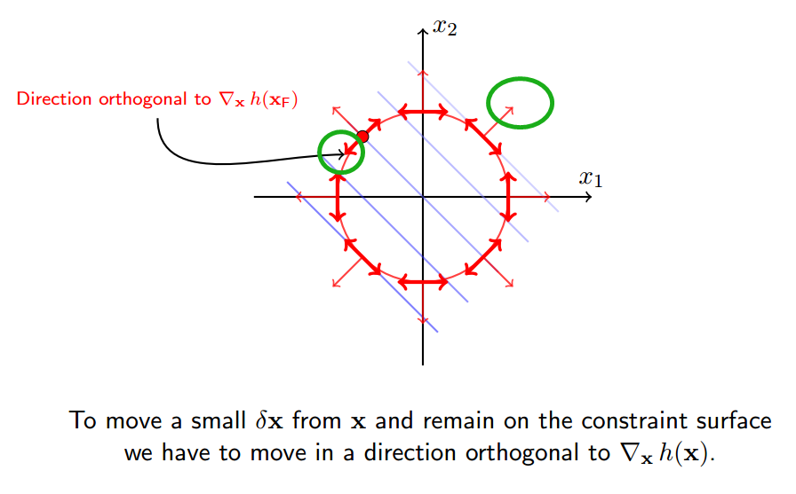 就是一个会使得f(x)减小的方向,但是这种移动将会破坏等式约束: h(x)=0