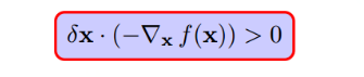 因此,要想f(x+delta_x) 变小,通过图形可以看出,只要保持和梯度反方向夹角小于90,也就是保持大概一个方向,f(x+delta_x)