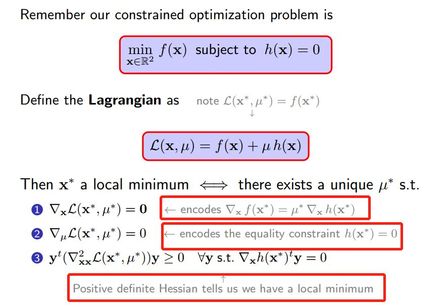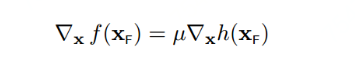 偏导数等于0的点,就是下图所示的两个关键点(它们也是f(x)与h(x)的临界点)。且必须满足以下条件,也就是两个向量必须是平行的: