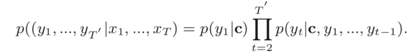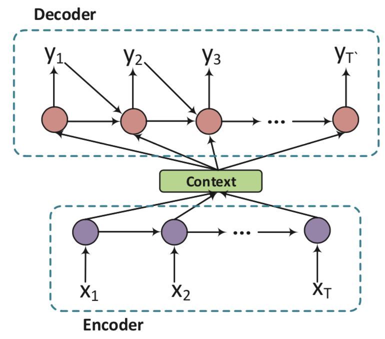 编码器将X逐字读入,并通过递归神经网络(RNN)将其表示为上下文向量c, 然后解码器将c 作为输入估计Y 的生成概率。