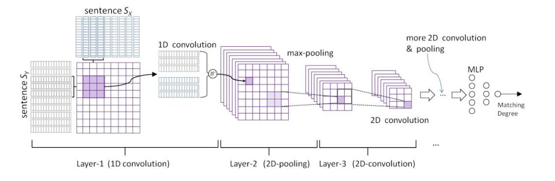 目前比较新的方法如下图,利用深度卷积神经网络体系结构改进模型,学习消息和响应的表示,或直接学习两个句子的相互作用表示,然后用多层感知器来计算匹配的分数。