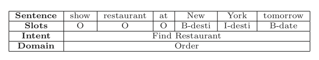 如果有一个话语,自然语言理解将其映射为语义槽。插槽是根据不同的场景预先定义的。